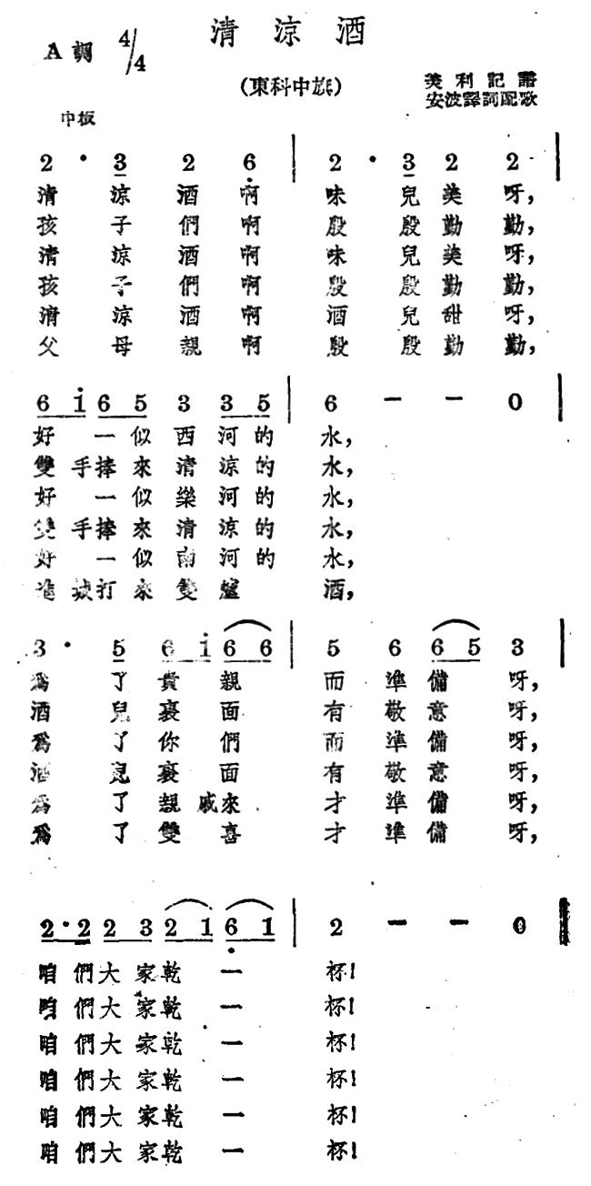 《清凉酒》简谱 蒙古族民歌、安波译词配歌