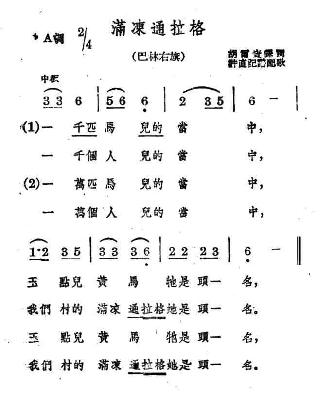 《满冻通拉格》简谱 蒙古族民歌、许直记谱配歌