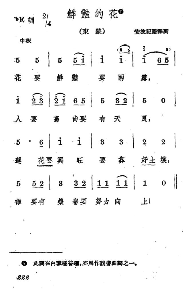 《鲜艳的花》简谱 蒙古族民歌、安波记谱译词