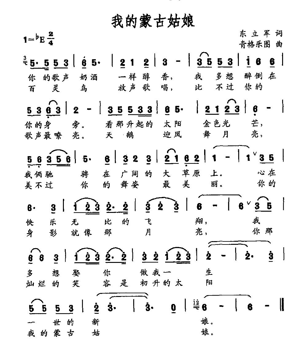 满冻通拉格-蒙古族民歌、许直记谱配歌