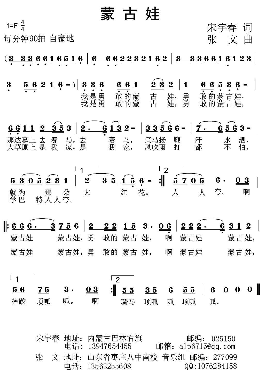 《蒙古娃(宋宇春词 张文曲)》简谱