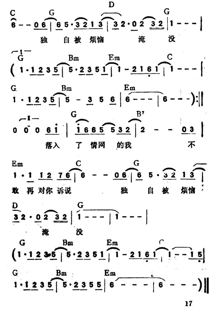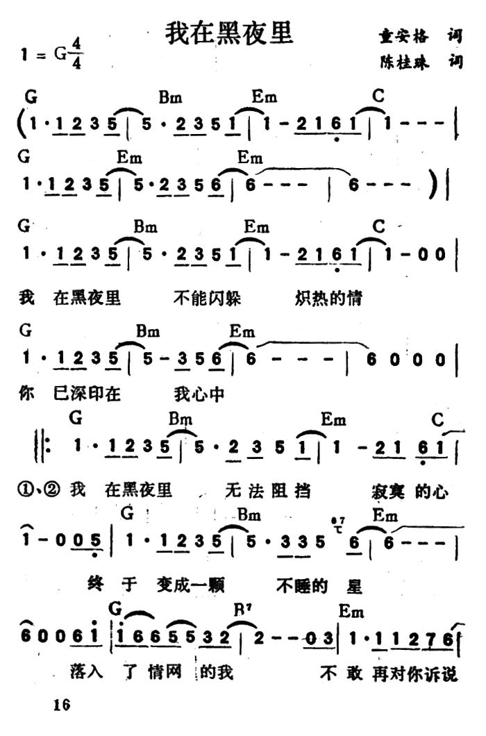《我在黑夜里(带和弦)》简谱 童安格