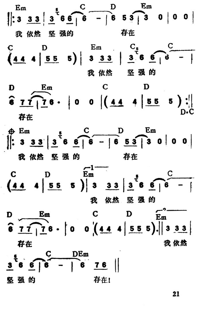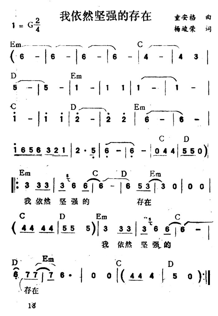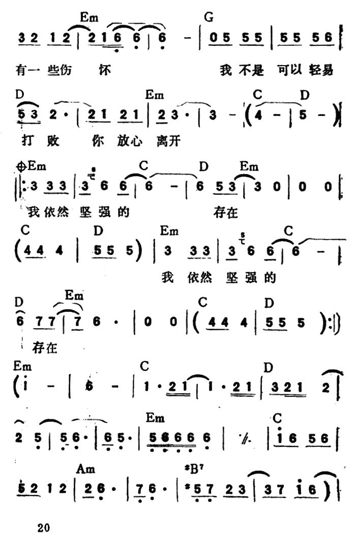 《我依然坚强的存在(带和弦)》简谱 童安格