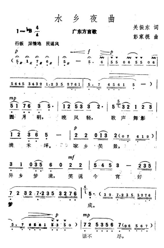 《水乡夜曲(广东方言歌)》简谱 彭家楻