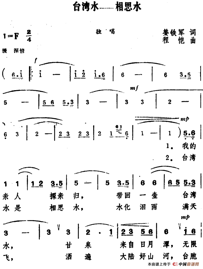 《台湾水——相思水》简谱