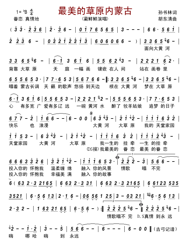 《最美的草原内蒙古》简谱 蔺鲜鲜