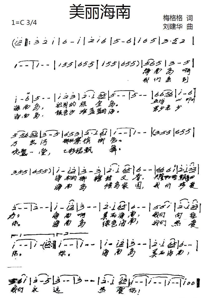 《美丽海南(梅格格词 刘建华曲)》简谱