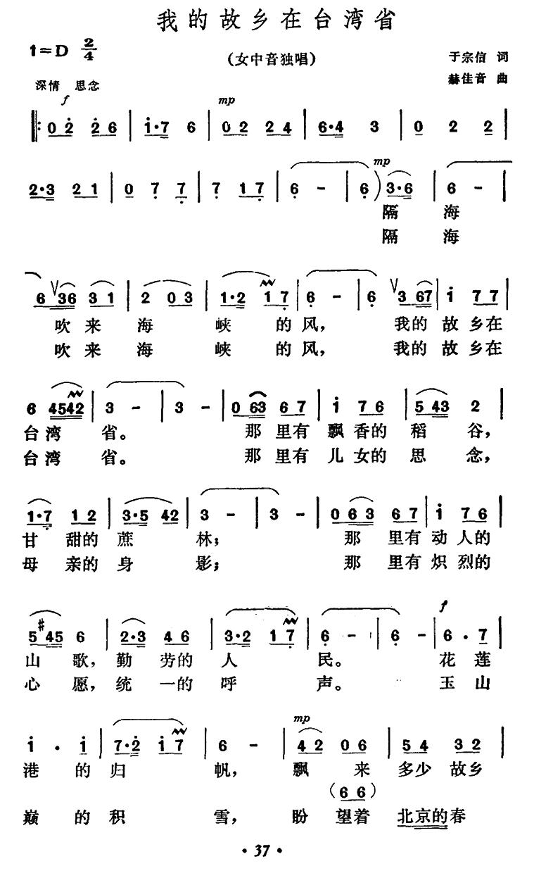 《我的故乡在台湾省》简谱