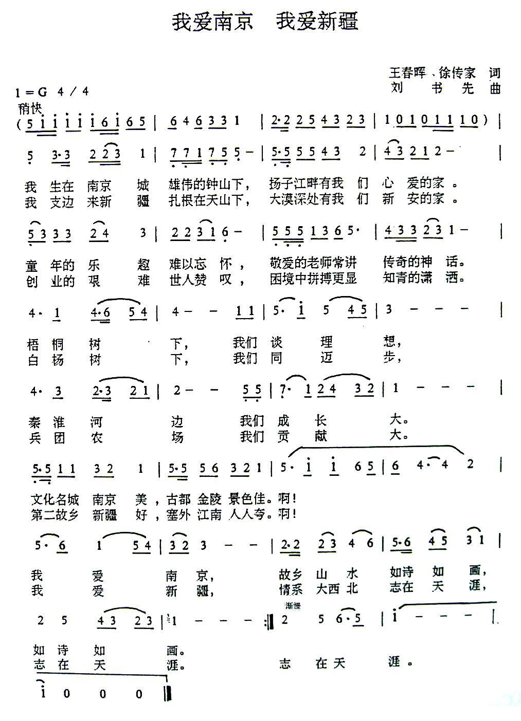 《我爱南京 我爱新疆》简谱