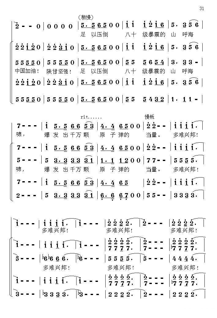 《中国魂(情景交响组歌)》简谱 陕西省歌舞剧院第31张