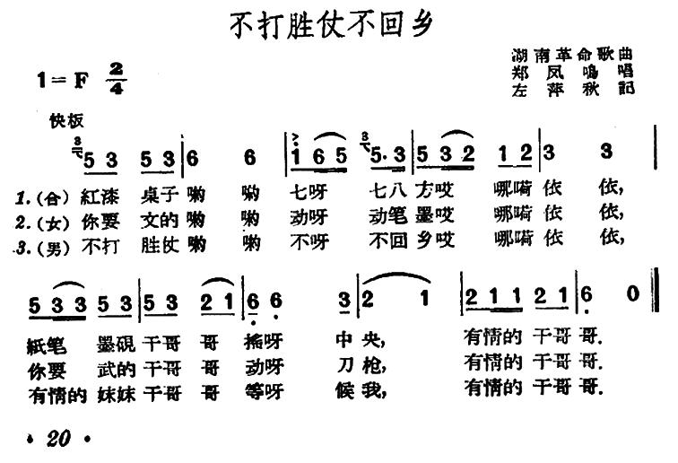 《不打胜仗不回乡(湖南革命歌曲 )》简谱