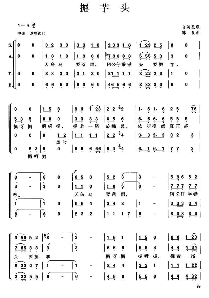 《掘芋头》简谱 台湾民歌、陈良作曲