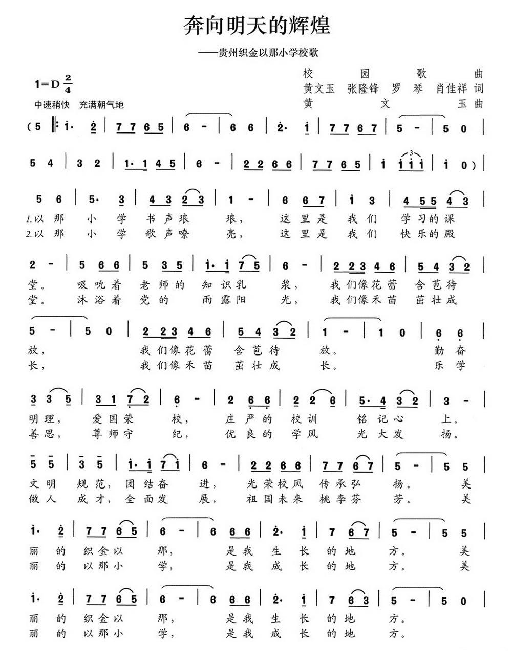 《奔向明天的辉煌(贵州织金以那小学校歌)》简谱 黄文玉