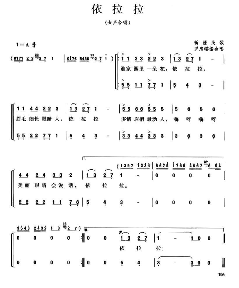 《依拉拉》简谱 新疆民歌、罗忠镕编合唱
