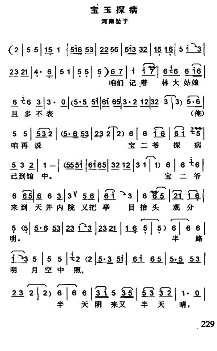 《[河南坠子]宝玉探病》简谱
