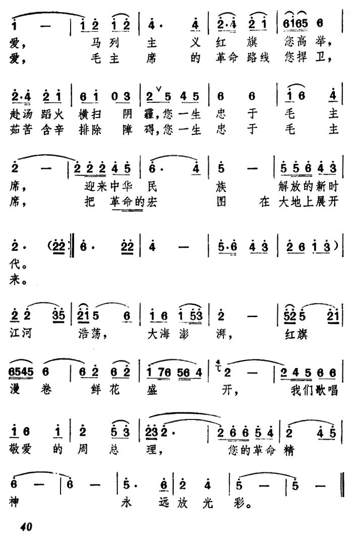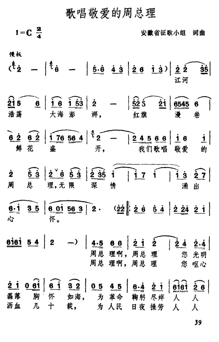 《歌唱敬爱的周总理(安徽省征歌小组词曲)》简谱