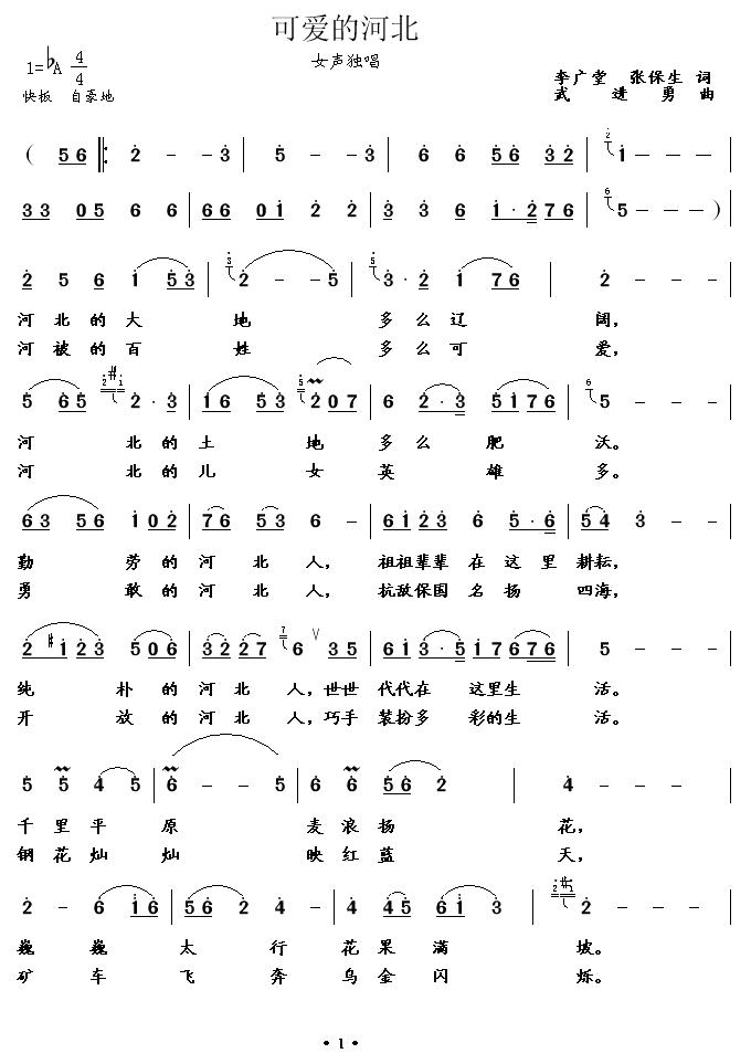 《可爱的河北》简谱