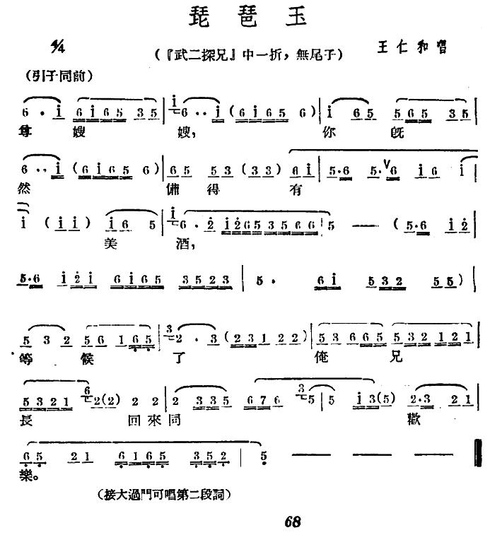 《[广西文场]琵琶玉(《武二探兄》选段、无尾子)》简谱