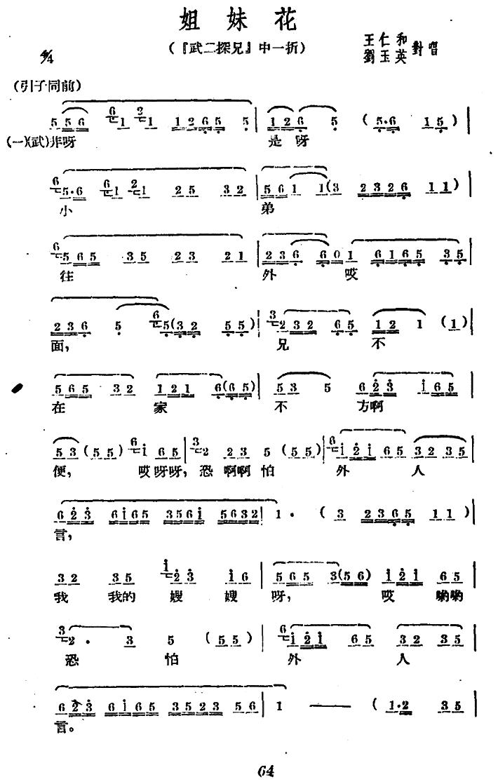 《[广西文场]姐妹花(《武二探兄》选段)》简谱