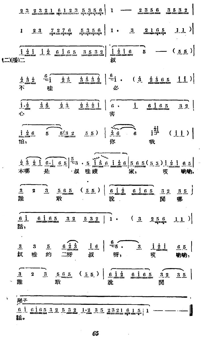 [广西文场]安春调(《武二探兄》选段、无尾子)简谱
