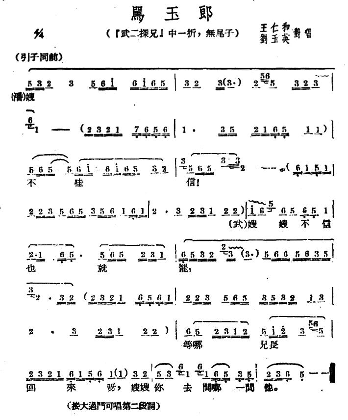 [广西文场]琵琶玉(《武二探兄》选段、无尾子)简谱