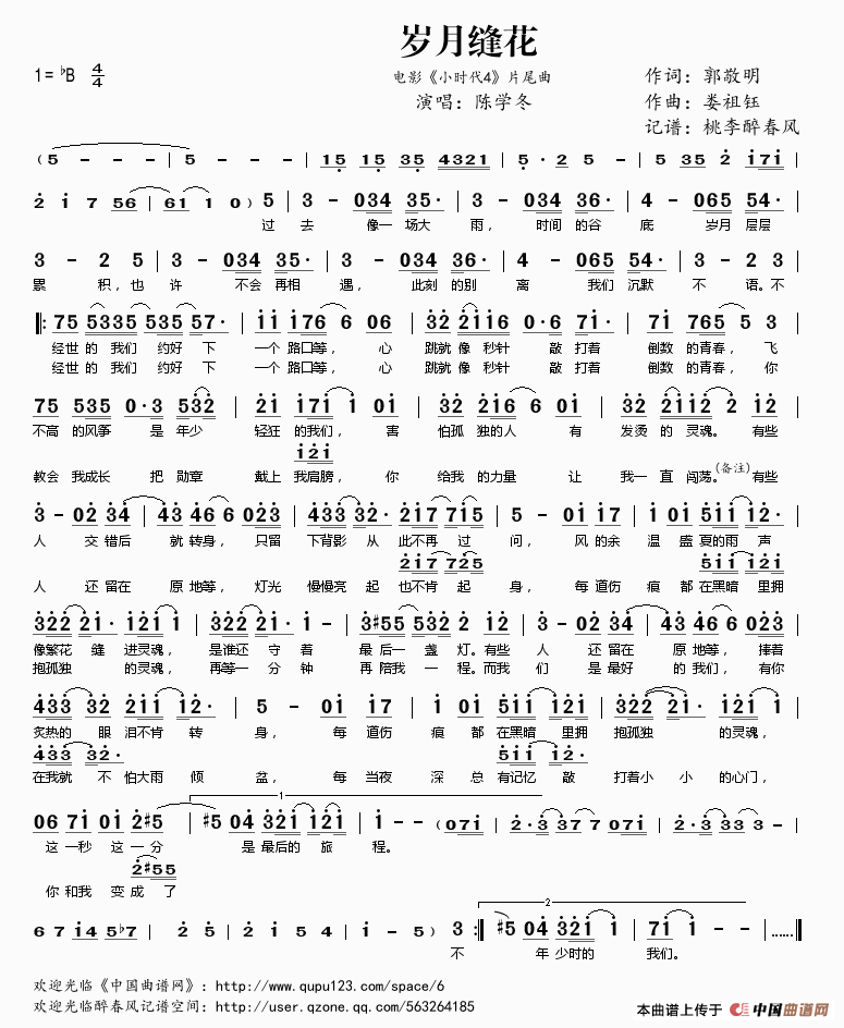 《岁月缝花((电影《小时代4》片尾曲))》简谱 陈学冬