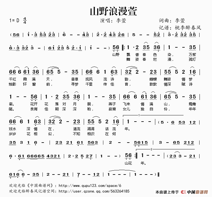 《山野浪漫萱》简谱 李萱