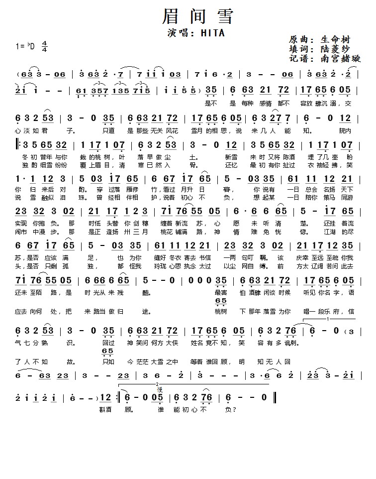 - 裂天/HITA | 乱舞江山(游戏《乱舞江山》主题歌)简谱