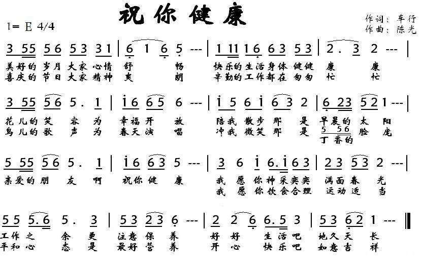 《祝你健康(车行词 陈光曲)》简谱
