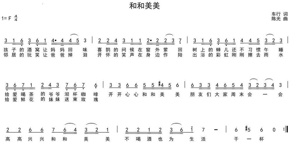 《和和美美(车行词 陈光曲)》简谱