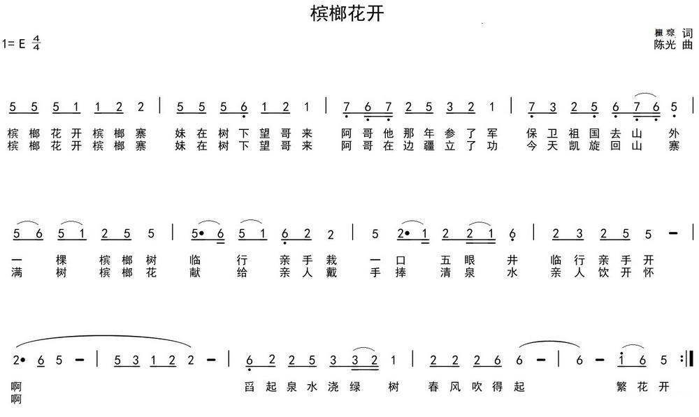 《槟榔花开(瞿琮词 陈光曲)》简谱