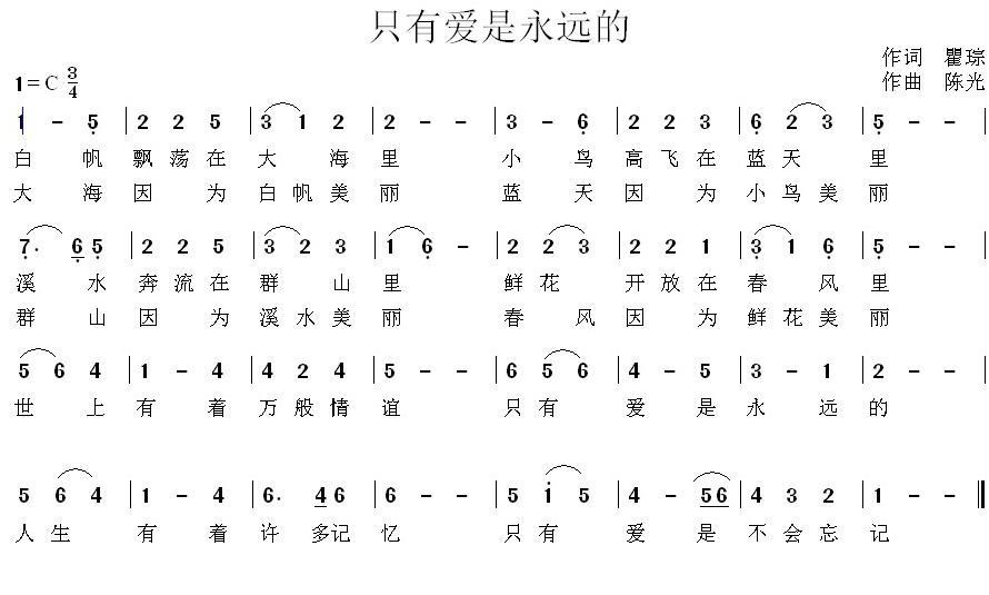 《只有爱是永远的》简谱 陈光