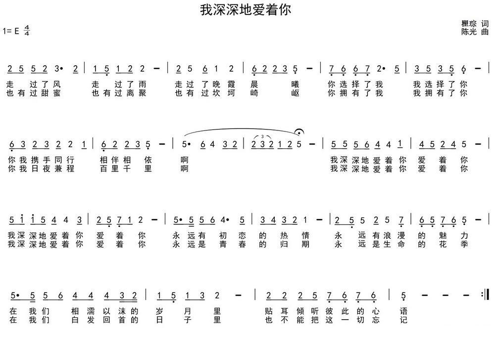 《我深深地爱着你(瞿琮词 陈光曲)》简谱