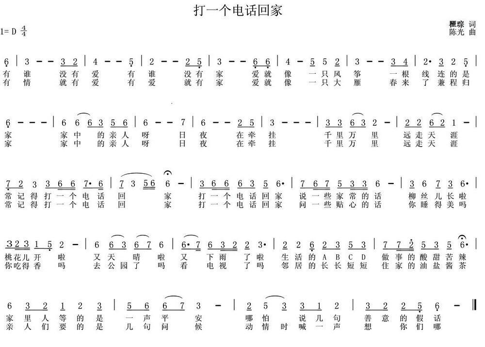 《打一个电话回家》简谱 陈光