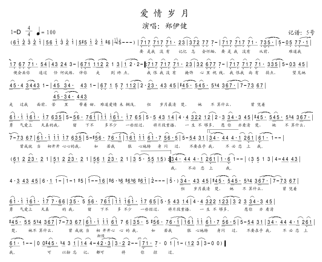为您搜集整理歌曲曲谱歌谱、简谱、吉它谱、钢琴谱!