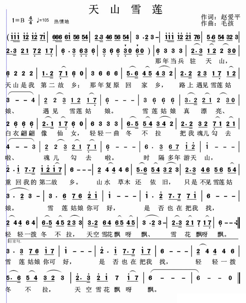 《天山雪莲(赵爱平词 毛孩曲)》简谱