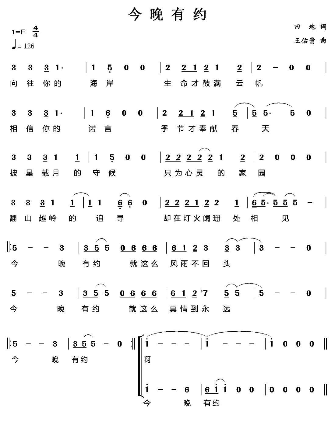《今晚有约》简谱 王佑贵