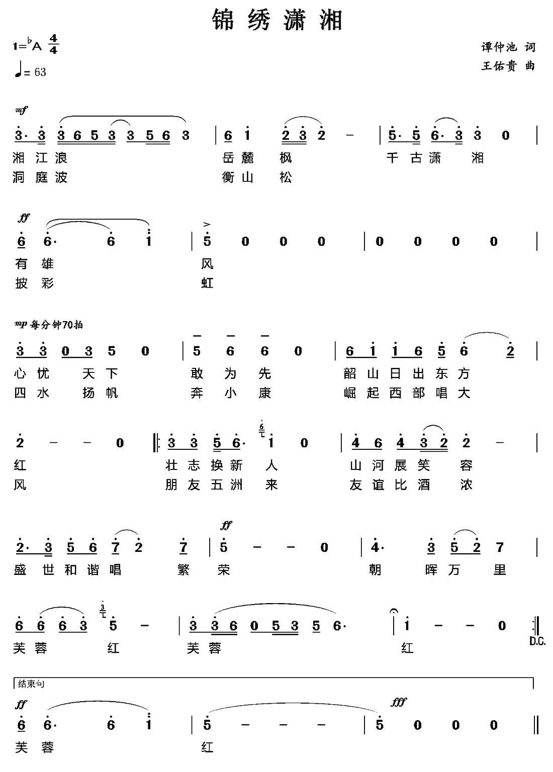 《锦绣潇湘(谭仲池词 王佑贵曲)》简谱
