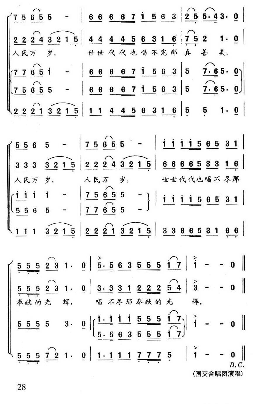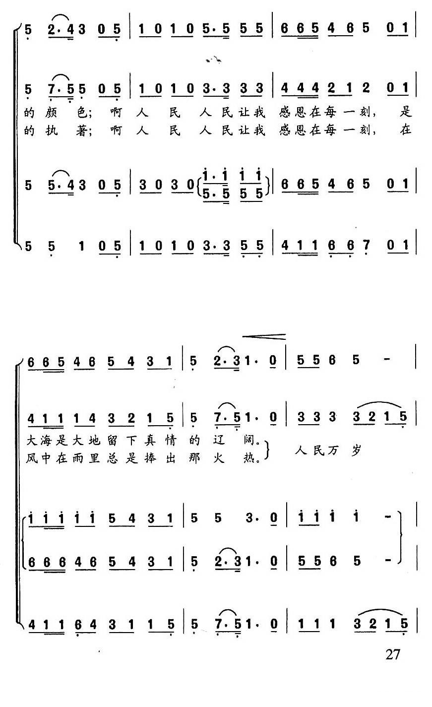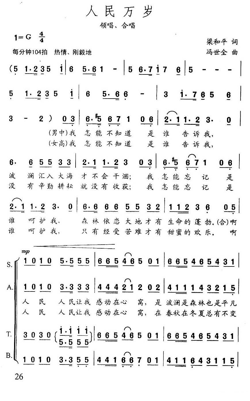 《人民万岁(梁和平词 冯世全曲)》简谱