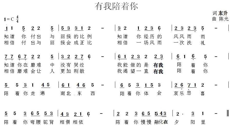 《有我陪陪你》简谱 陈光