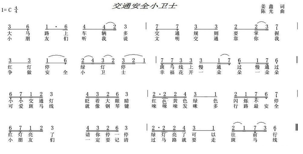 《交通安全小卫士》简谱 陈光