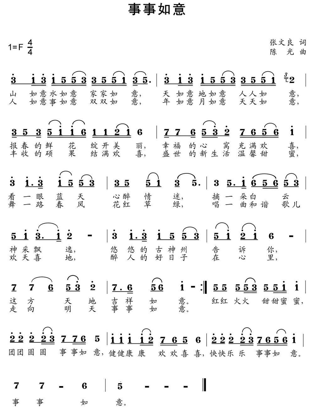 《事事如意》简谱 陈光