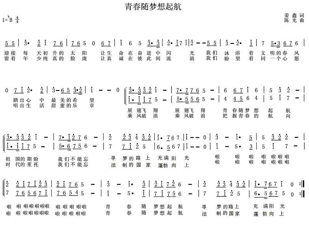 《青春随梦想起航》简谱 陈光