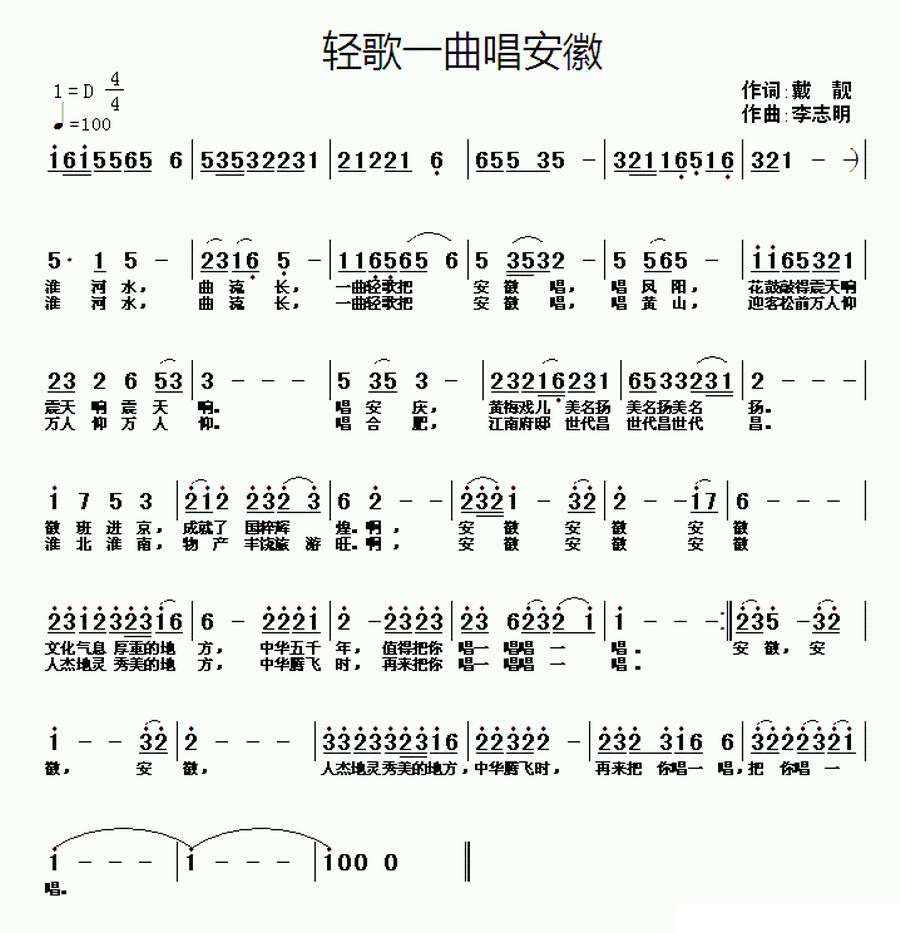 《轻歌一曲唱安徽(戴靓词 李志明曲)》简谱