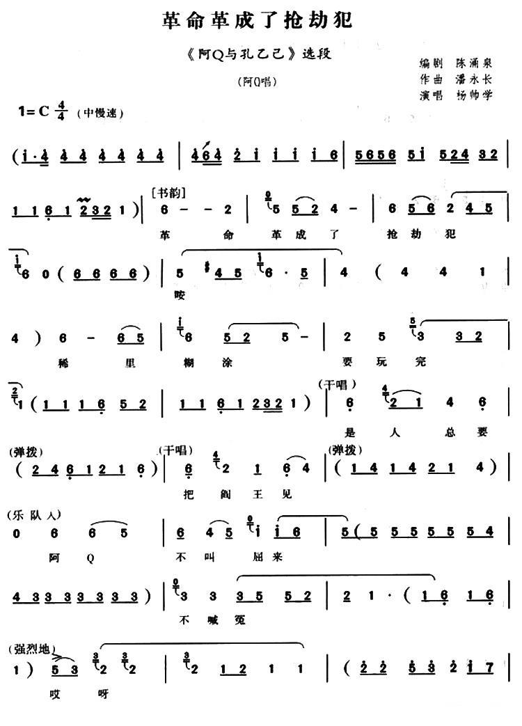 《[河南曲剧]革命革成了抢劫犯(《阿Q和孔乙己》阿Q唱段)》简谱