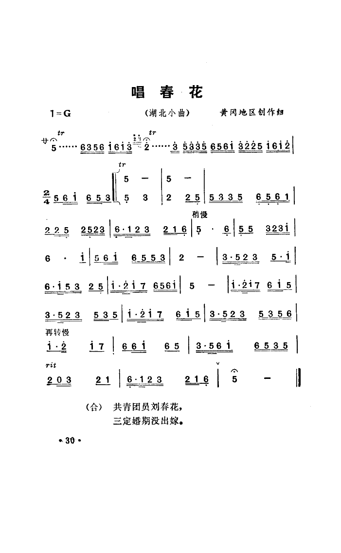 《唱春花(湖北小曲)》简谱 严锦芳何岭仙等