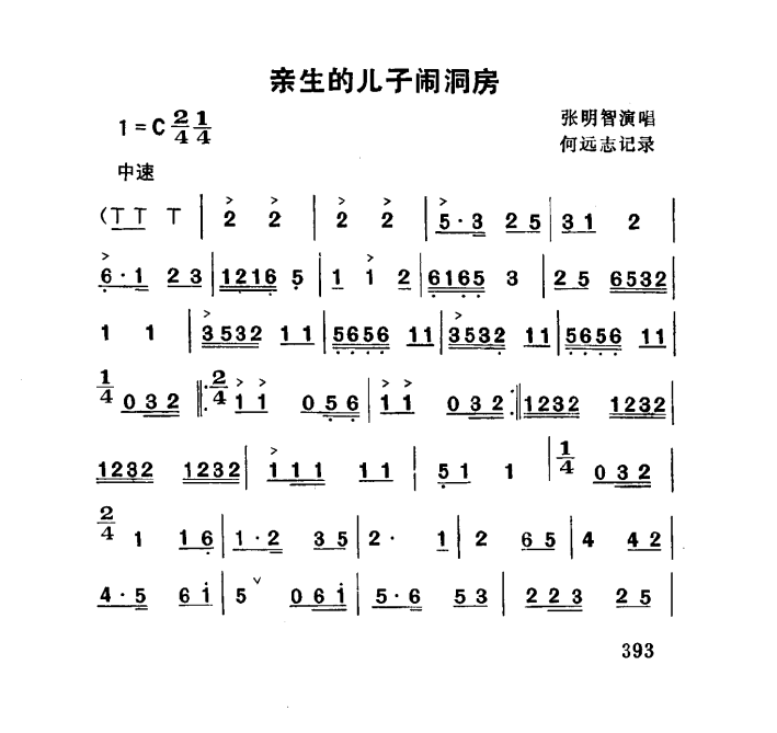 《亲生的儿子闹洞房(湖北大鼓)》简谱 张明智