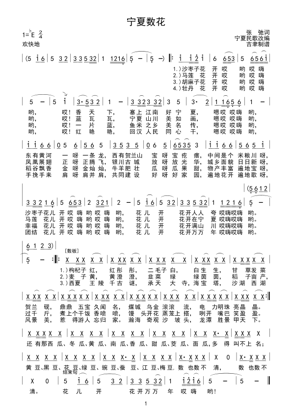 《宁夏数花》简谱