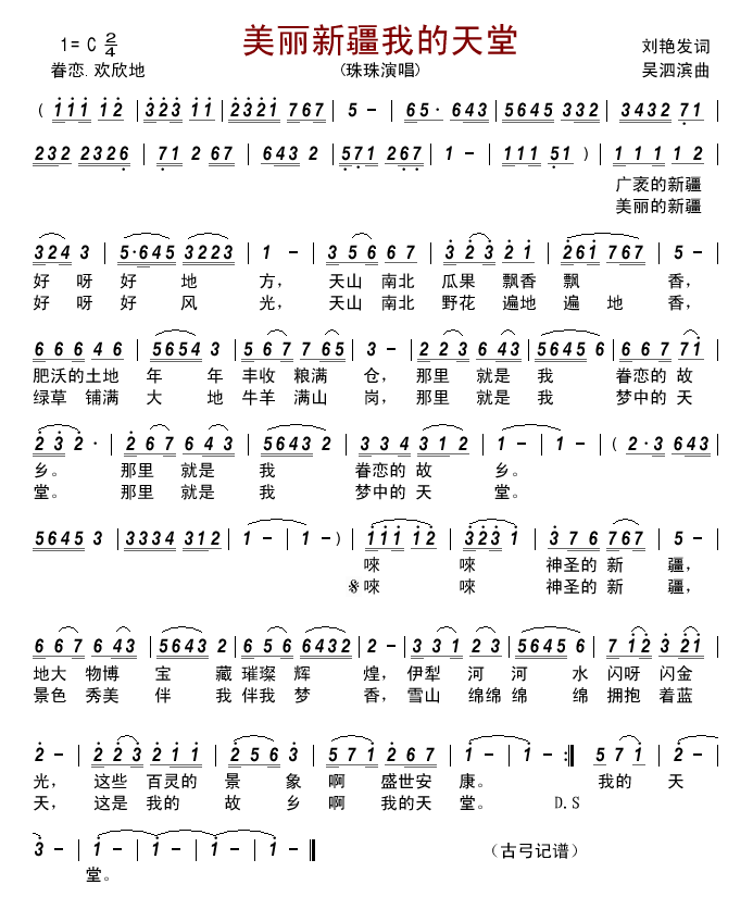 飞奔吧,新疆(茅晓峰词 舒京曲)