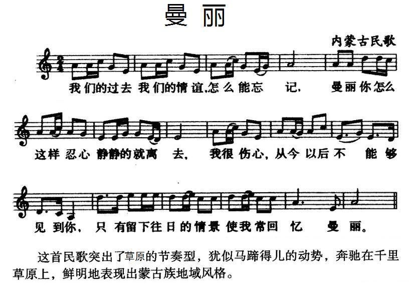 《曼丽(内蒙古民歌、五线谱)》简谱